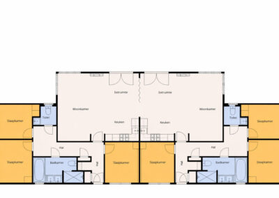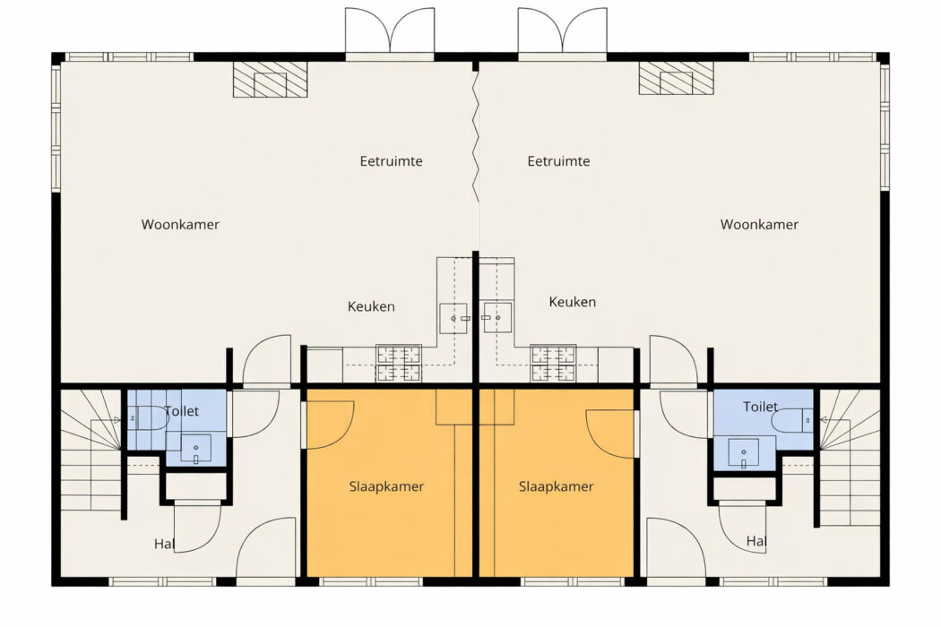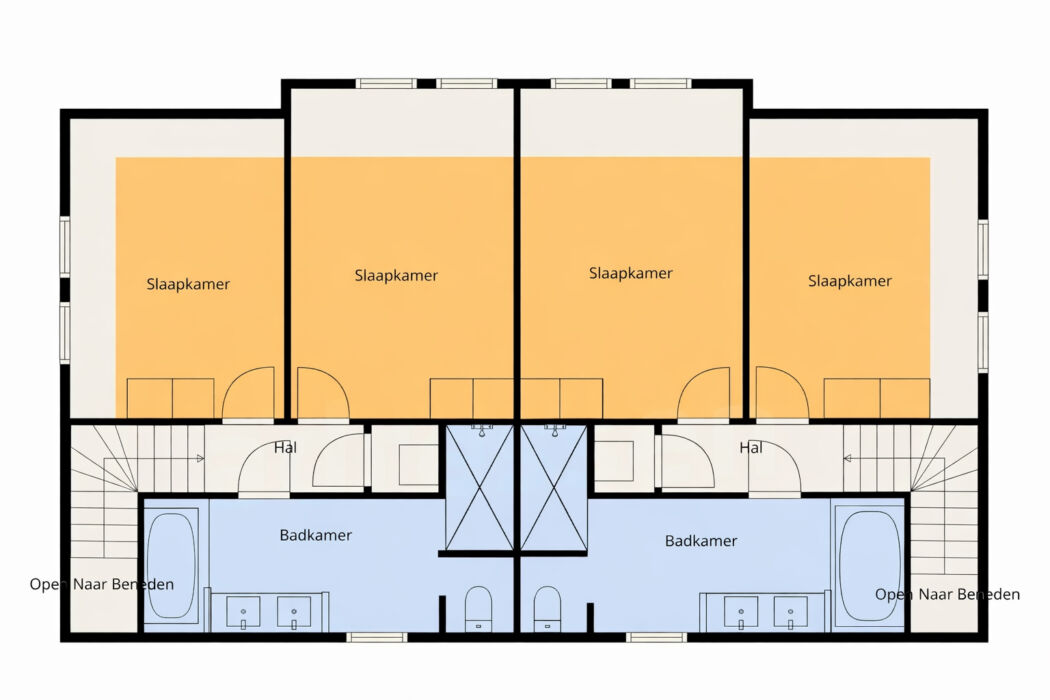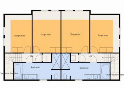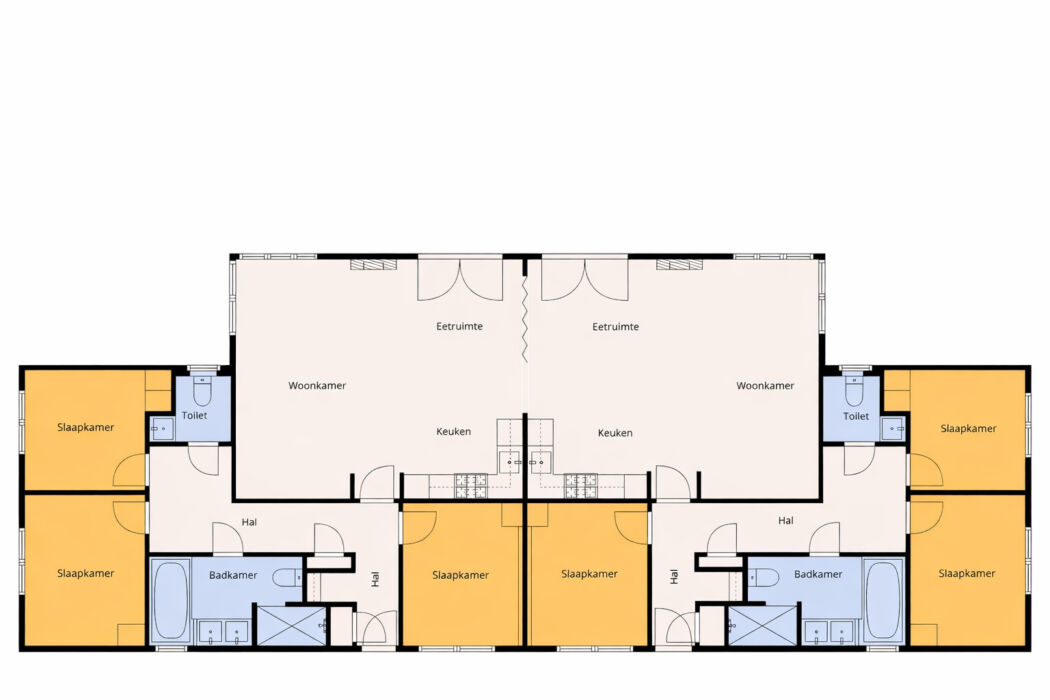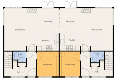 Beide accommodaties zijn twaalfpersoons en hebben dezelfde inhoud. De Wolbert is wat verder van het restaurant gelegen en volledig begane grond. De Hulsmeijers heeft een bovenverdieping en ligt tegenover het restaurant. Beiden liggen aan het water. Ziet u onderaan deze pagina de plattegronden.